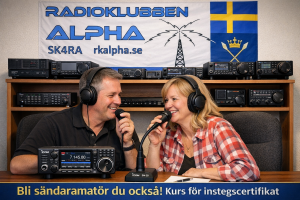 Radioklubben Alpha anordnar en kurs med start i mars 2026. För medlemmar är kursen gratis, för icke medlemmar kostar den 1 års medlemskap i föreningen, det vill säga 150:-. Kursen hålls under 6 kurstillfällen i ABF’s lokaler i Smedjebacken med hemstudier mellan kurstillfällena. Möjligheter att delta på distans kommer också att finnas. Kursboken sponsras med 100:-/bok av ABF. Föreningen beställer hem kursboken och ni betalar det reducerade priset, 75:- vid kursstart.